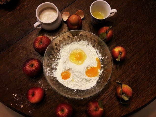 Mivel Pistának szülinapja volt és az alma is leérett, adta magát az egyismeretlenes egyenlet megoldása, az almatorta. Összeszedtük hát az almákat, amik eddig kimaradtak. Van egy Golden, egy starking és egy idared fám. Nekem az utóbbi a kedvencem. De a többinek is finom illata, zamata van. A starking például rengeteg pingpong és kosárra dobást látott idén, szemtanú. Jobb is lett a termés. Érdemes az almafák környezetében sokat sportolni 🙂 A golden csak nyeklett nyaklott, szegényt megtámadta egy gomba, hiába hadakoztam vele, a termés is szerény és visszafogott lett.. ez a kép a kert első almafáiról lepotyogók képe, kivéve Vincét, aki nem hullott rájuk a gumihintáról..