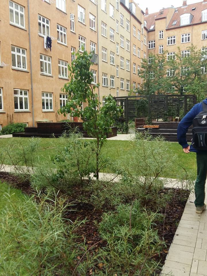 Kata: A közösség abba nem szólt bele, hogy mit szeretnének, csak a háztanács vezetője? Mi olyan házban voltunk tavaly Koppenhágában, aminek a kertje szuper nagy volt és tengernyi közösségi térre oszlott, minden korosztály megtalálta benne az örömét. Ez nekem marhára tetszett. A hulladékgyűjtőben szabad könyvtár is volt, egy polcra lerakták az elolvasott könyveket és az vitte, hozta, aki akarta. Okosan használták, éltek a kertben. Budapesten több haldokló, kihasználatlan belső kertet látok a házaknál, és nagyon motivált vagyok, hogy segítsek, részt vegyek a kialakításában, használják örömmel a kertet kicsik és nagyok. Készítettem a koppenhágai belső közösségi udvarról képeket: