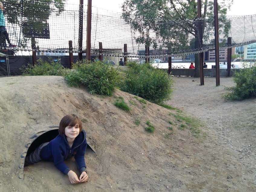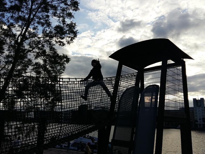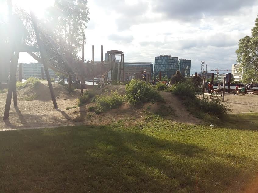 Kata: Mi az Island bridge-nél laktunk anno. Ott az tetszett, hogy sok izgalmas közösségi teret láttam. Igaz, hogy nem ők alakították, hanem, mint szolgáltatás volt jelen. De szuper volt, hogy egymás mellett volt a piknikező, kivetítő előtti hencsergés, a játszótér a gyereknek, a lábtengó pálya a felnőttnek, a sörkimérés stb. A házak udvarán is a terek nagyon tudatosan kialakítva, hogy mindenki érezze jól magát együtt. Ez nagyon tetszik, szeretnék hasonlókat kialakítani itthon is bérházak udvarán, iskolákban, óvodákban és ha lehetőségem lesz, közterületeken is. Ott is fotóztam, pont a foci vb volt, nagy kivetítős fiesta lett belőle, a gyerekek meg mellette tudtak játszani, mindenki boldogan elvolt a saját igényeinek megfelelően 🙂