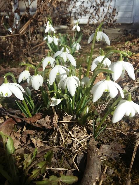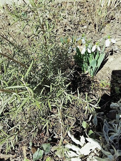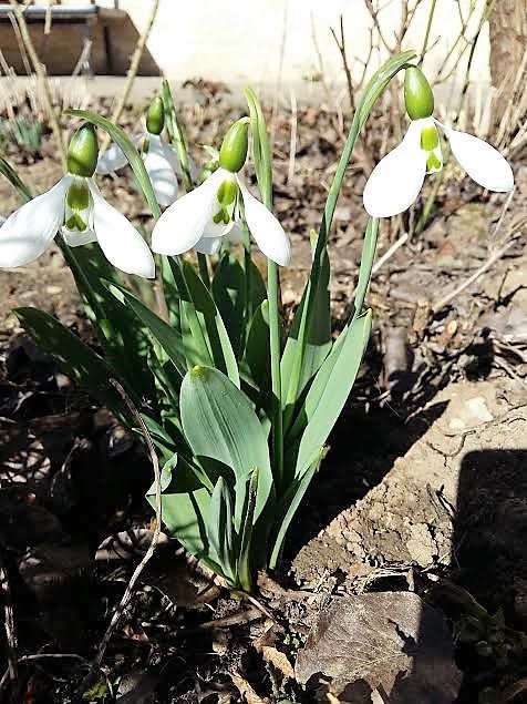 Aztán végig metszettem mindent: a rengeteg elszáradt krizantém bokrot, már bújtak alattuk a friss hajtások. Lecsipegettem az elfagyott rózsavégeket (szerencse az nem volt olyan sok). Az íriszeket is újra levegőhöz juttattam, leszedtem a sok elszáradt öreg levelet, nem kell már nagyon a takaró és jön a friss hajtás.Szép kontrasztot adott az elszáradt téli ágaktól való búcsú és a friss előbújó zsenge hajtások. Ennek koronája volt az első kis virágom, a hóvirág. Többféle is van, egyik szebb, mint a másik!
