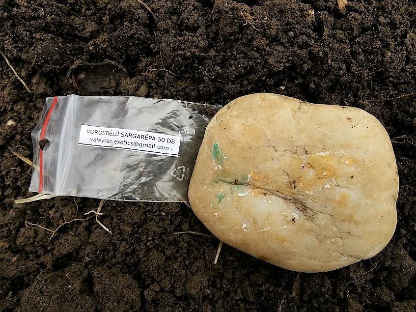 Aztán nekiálltam felásni, amit fel kell, fellazítani a felső kötött talajt, illetve átforgattam mindhárom magaságyás földjét a trágyával. Mikor minden szép és jó volt, elültettem a kis magjaimat, az első kora tavasziakat: rukkolát, vajsalátát, vörösbélű répát, pórét, újhagymát, római salátát stb. A hűvösebb körülmények között termesztett répák édesebb ízűek, finomabbak, mint a forróságban növekvők. A tavalyi jelölő köveket használtam, majd felfrissítem, ami lekopott (pl. a répáét). Végül vetési tervrajzot is készítünk Vincével. Legközelebb kaprot és büdöskét is ültetek közéjük a kártevők távoltartása miatt (is).