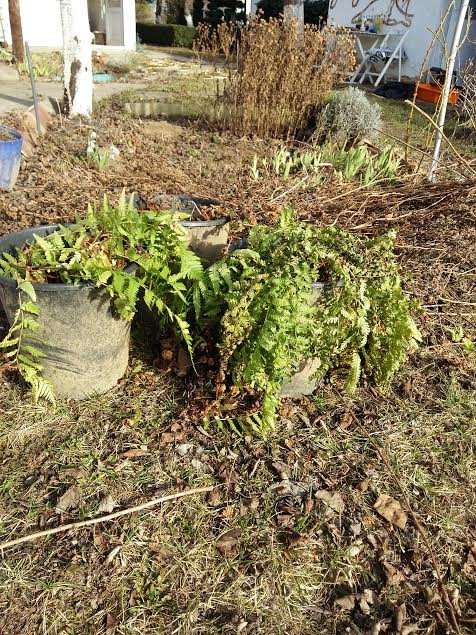 Itt fel kell szabadítani mindenkit, rendet rakni, frissíteni, levegőhöz juttatni.. Közben előhozta Laci a pincéből a muskátlikat, amiket szintén a házzal maradtak itt. Fantasztikus tövek, hihetetlen metamorfózison esnek mát mindig. Hasonlóképp az öreg páfránytövek, amik a pincében telelnek. Van kint is egy páfrány, ő más. Mindenki kapott frissítő metszést, trágyát, konfettit, komposztot. Az ősszel vett futójázmin is élettelen jeleket mutat, remélem, kizöldül még ő is.
