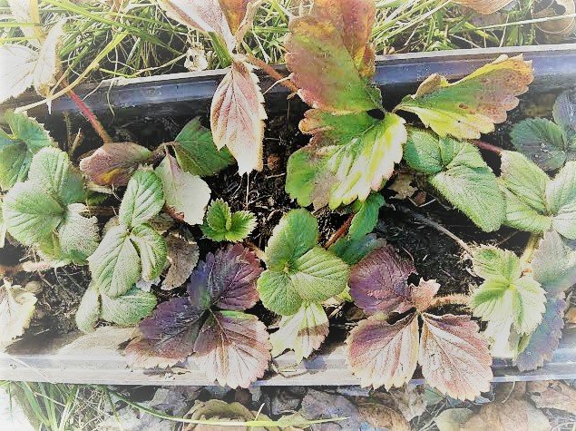 Elültettem a dugványaimat, újabb hostáimat is és egy ajándék citrommuskátli dugványt. Karózom még őket egy ideig, mondom, feledékeny vagyok. Az epreket is megfiatalítottam, lecsipegettem az elszáradt leveleket.