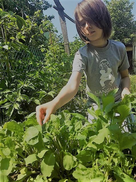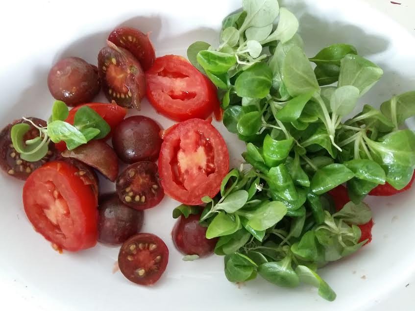 A kapor is már kidugta a fejét, az is mennyei lesz majd a salátákba, de még neki növögetni kell. Emlékeztek, írtam, hogy ültettem a virágok közé is több helyre, hogy aromáival elriassza a mohó csigákat, akik tavaly annyi gondot okoztak nekem. Idén még nem néztünk farkasszemet, de tavaly is június elején csaptak le jól szervezett seregekkel és aztán eszegették a nagy árnyékliliomjaimat és megbújtak az árnya alatt, karalábémat befalták, mire hazaértünk Koppenhágából. Pont előtte jelentek meg, rögtön erős offenzívával, látták, hogy indulunk, pláne külföldre, nem volt bennük egy csöpp megértés sem. Így hát, mikor indultunk és láttam, nagy a baj, hívtam az én drága szomszédaimat, vessék be csigaölő természetüket és mentsék meg a kertem, míg távol vagyok. Édesek voltak, felváltva megjelentek a kertemben és megtették, amit a haza kívánt. De majd most a kapor megóv ettől, ebben bízom elejitől fogva. Aztán majd elválik, de én állok elébe! Igen, ha saláta, akkor szót kell ejtenünk a csigákról. Láttam fotókat, hogy étteremben felszolgált saláta alól is kikukucskáltak. Szeretik ők is, megértem. Rajongok a salátákért. Szeretem a zöldséges tiszta, friss ízét, textúráját. Őszintén kibukik belőlem, mindent tisztán szeretek a legjobban. A tiszta ízeket, nyersen letépve eszegetem. Persze a vegyes salátákért is oda vagyok, játszom az öntetekkel, de ha tehetem, nem teszek bele mindenfélét, csak pár összetevőt. Külön öröm, hogy a fiam is szeret velem molyolni a kertben. Salátát csak hamburgerben eszik ő, illetve a rukkolát gyakrabban.