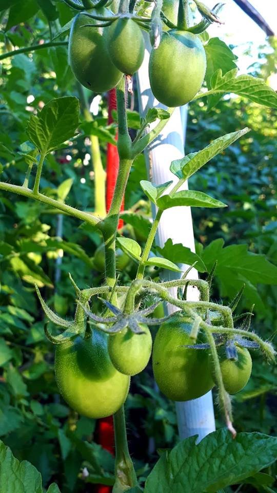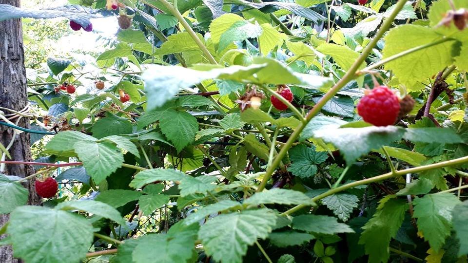 Persze a gyümölcsökkel, zöldségekkel is foglalkoznom kell, hónalj hajtásokat kicsípni a paradicsomnál, picit átfrissítem, metszegetem őket is. A szőlőt és almát is. A füge még kicsike, de már kettő büszke kis termés illeg-billeg rajta. A málnákat újra átszüretelem majd holnap, jó lesz a sütéshez, csipegetni mindenkinek. Van sárga, piros és fekete (lila málnaként vettem, de inkább feketés lila)