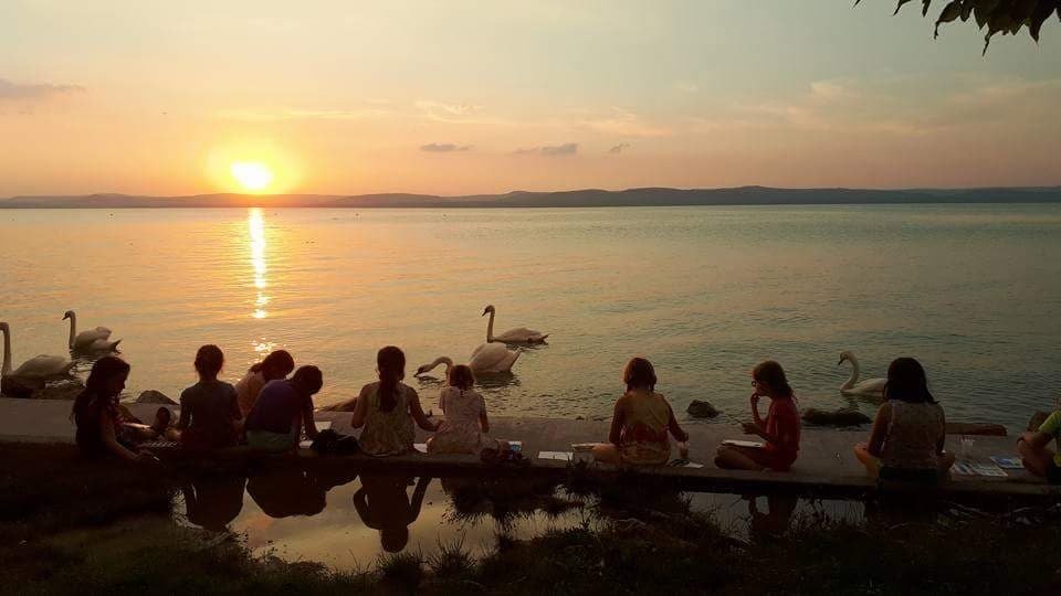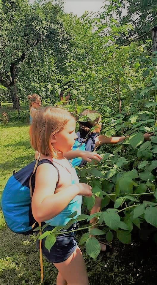 Ahogy a kapun bejöttek a kis pacák (így hívják az alkotó köreimet Budapesten), ezt ismételgették: “én nem gondoltam, hogy ilyen jó lesz!” Boldogan vették birtokba a hintákat, mászókötelet, kuglit, hintaágyat, kis kerti házat, padként szolgáló szörfdeszkát. A kert mindenkit elvarázsol. A legjobb közös étkezések mindig a diófa alatt voltak, a legédesebb csemegézés a málnabokroknál és ribizlinél.