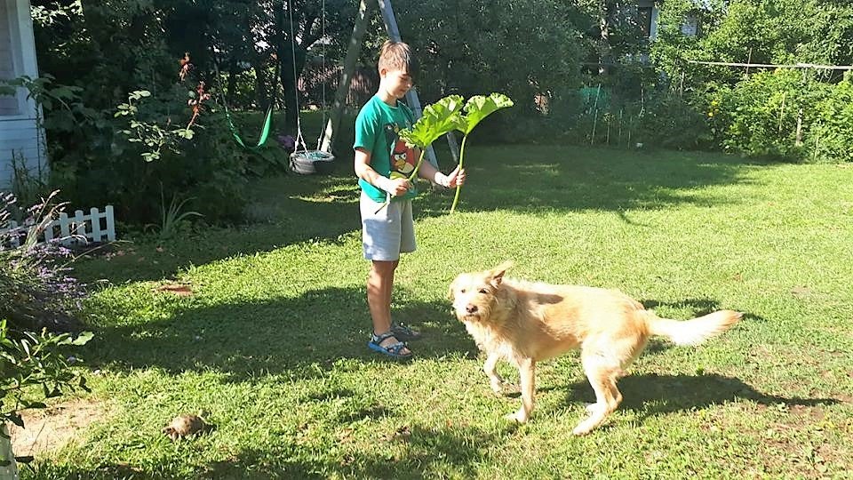 Boldogság volt velük rebarbarát szüretelni, és szörpöt főzni belőle. Szedtek hozzá citromfüvet, mentát és csokimentát.