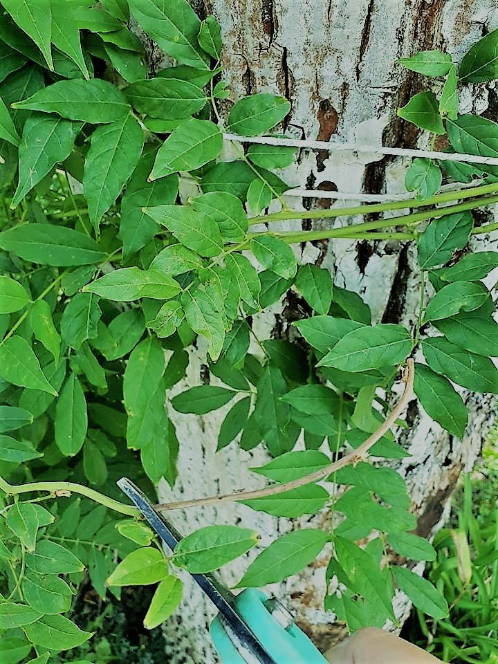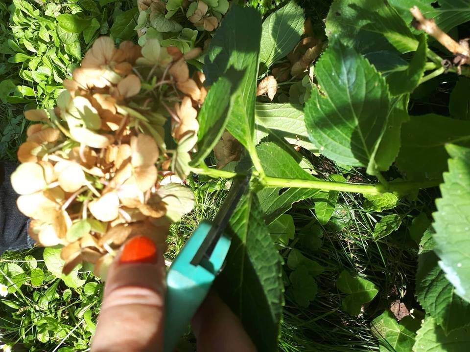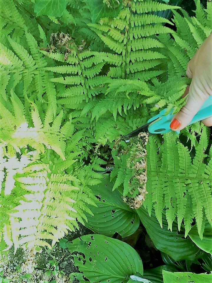 Metszem a kis egreskémet, futó lila akác kis kacsait, hogy intenzívebb legyen a növekedés, a hortenziák elvirágzott részeit is a páros rügyig visszametszem, hogy erősödjön, hozzon több levelet levelet, dúsuljon a bokor. Kis idő alatt már látványos erősödést mutat. Sokszor a hajtáscsúcs lecsípése lendít egy nagyot a növény növekedésében. A páfránynál lecsíptem az elszáradt hajtásvégeket,