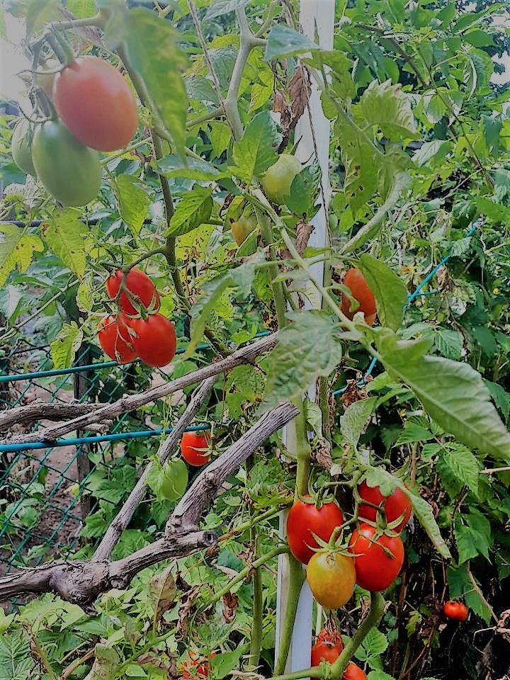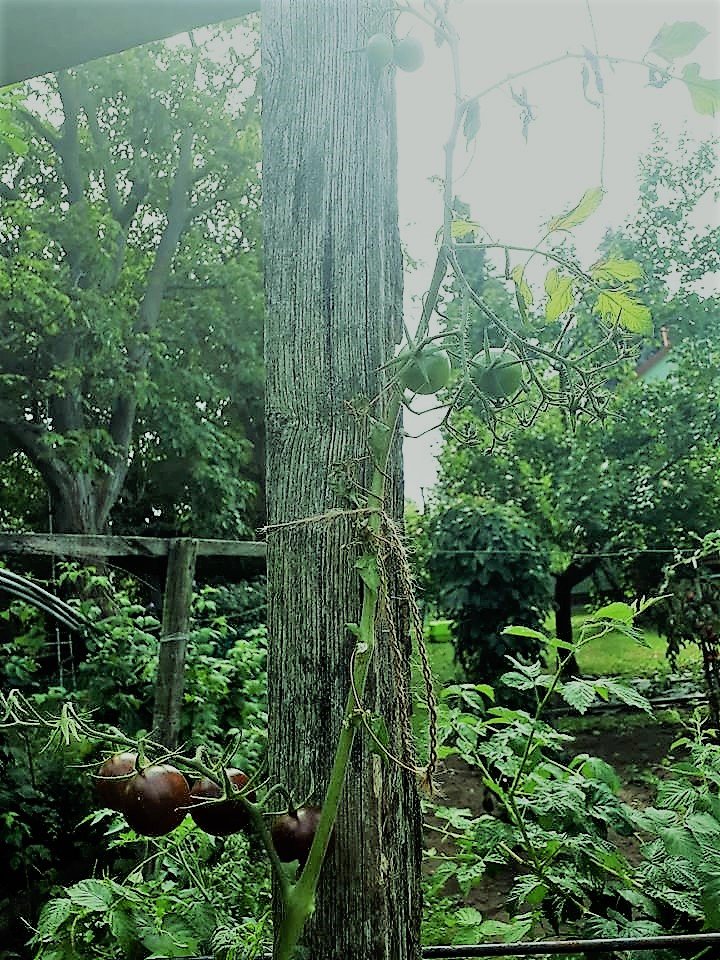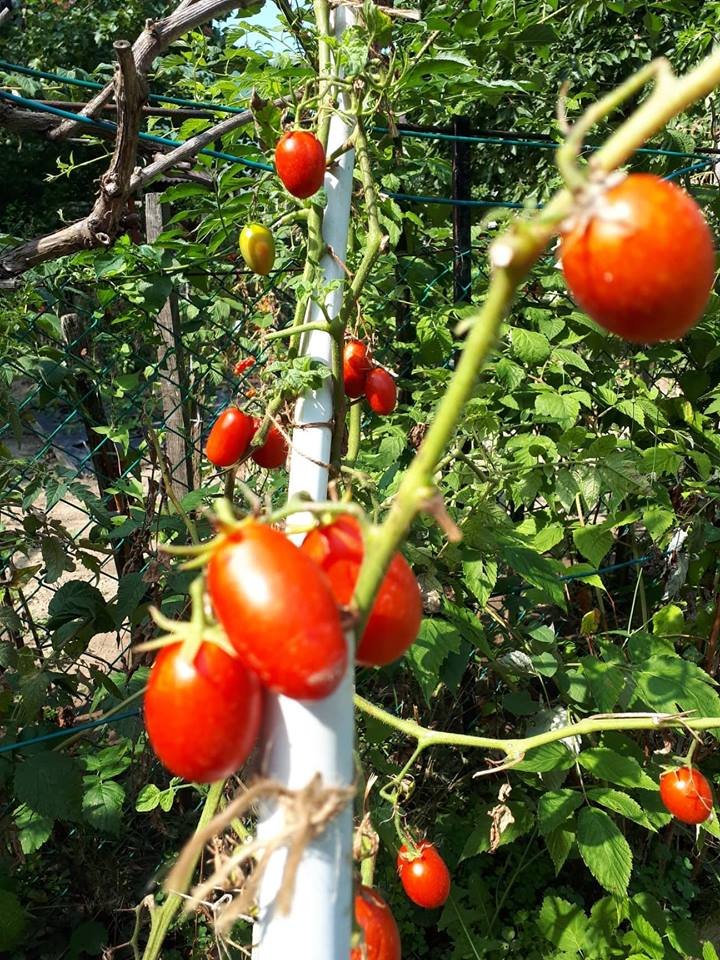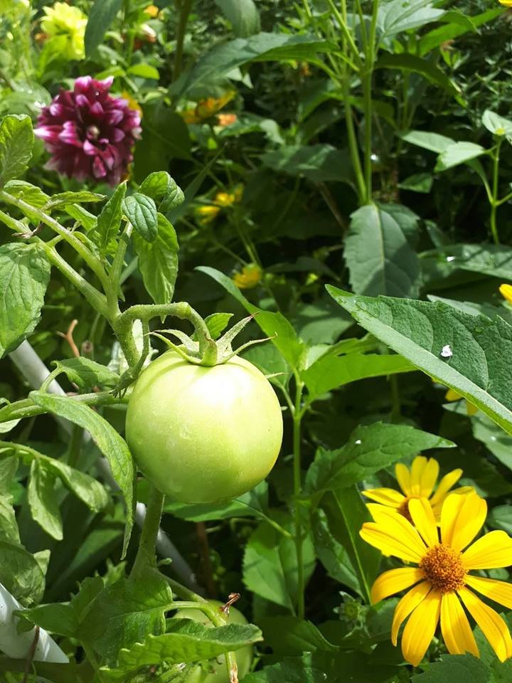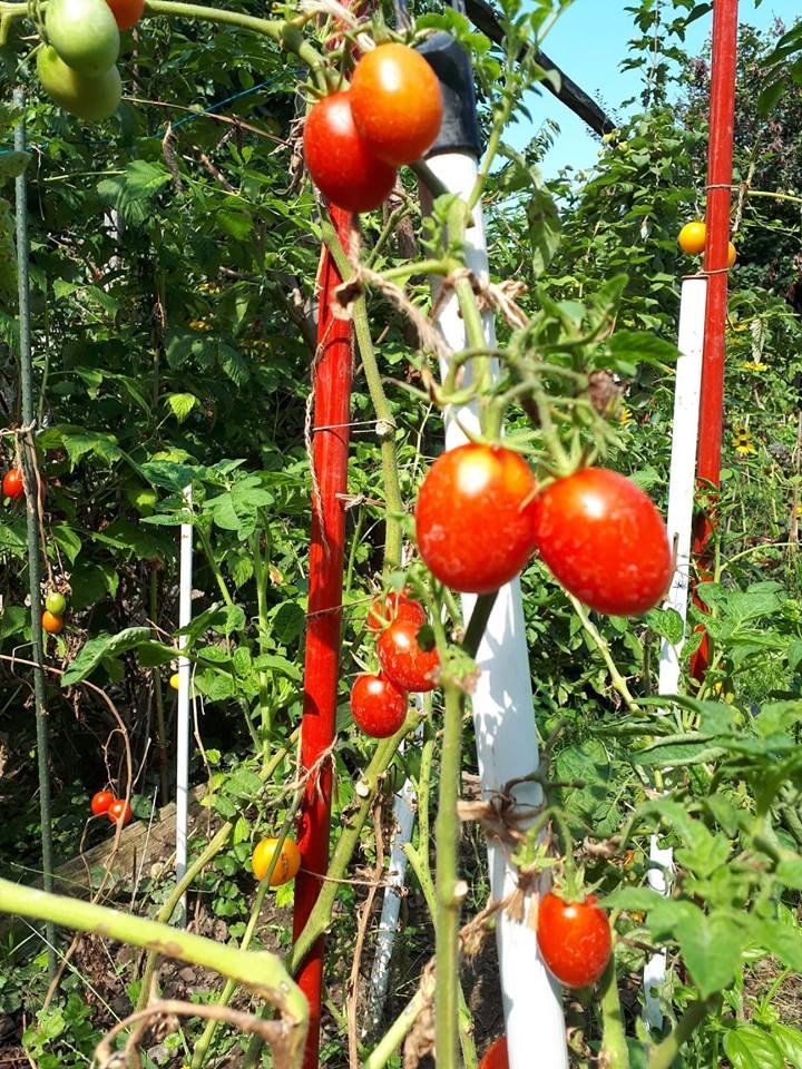 És persze MINDEN virágágyásomban előbújt egy-egy tő paradicsom. Fogalmam sincs, ki hívta őket a buliba, de ha már így alakult, maradtak. Meghálálták. Itt méginkább kell metszeni, ritkítani, ezek a képek a brutál sűrű ágyások mintaképei 🙂 olyan dél-olasz hangulat van, de mindjárt alakítok rajta, hogy a skandinávok is otthon érezzék itt magukat..max.nem
