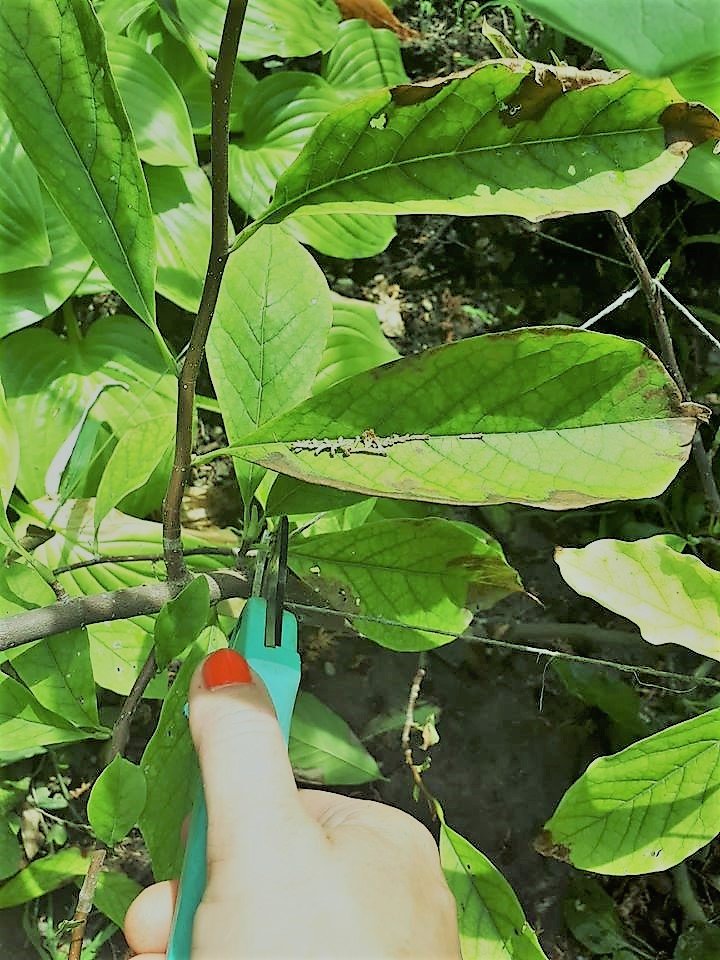 A magnóliámat átköltöztettem az előző helyéről, mert benőtte mindenki. Tudom, hogy nem jó mocorgatni, de nagyon akarta, én meg engedékeny vagyok, sőt. Vittem, kapott új savanyú földet, saját nagy területet (persze mellé is pattant egy jókora paradicsom 🙂 ). És az elkornyadozott levelektől megszabadítottam. Már azóta is nagy tempóban hajtanak ki a friss levélkék, nagy erőre kapott, hálás.