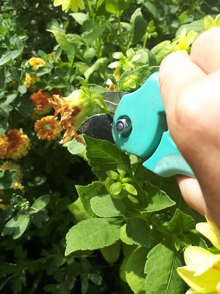 A virágoknál az elnyílt virág öregedési hormont termel, ami, ha nem metsszük vissza a virágot, visszacsorog és képes befékezni a növény fejlődését, gátolja azt. Sőt, a muskátliknál is mutatom majd, érdemes jócskán visszametszeni, ameddig csak lehet (sőt, annál is tovább-levendulánál figyelve a fás részre azért) , hogy ne csurogjon vissza semmi gátló hormon. A dáliákat, rózsákat, szellőrózsát stb. is folyamatosan frissíteni kell az elnyílt virágok után. Könnyebb lesz az életük és kedvük, erejük lesz újabbakat hozni.