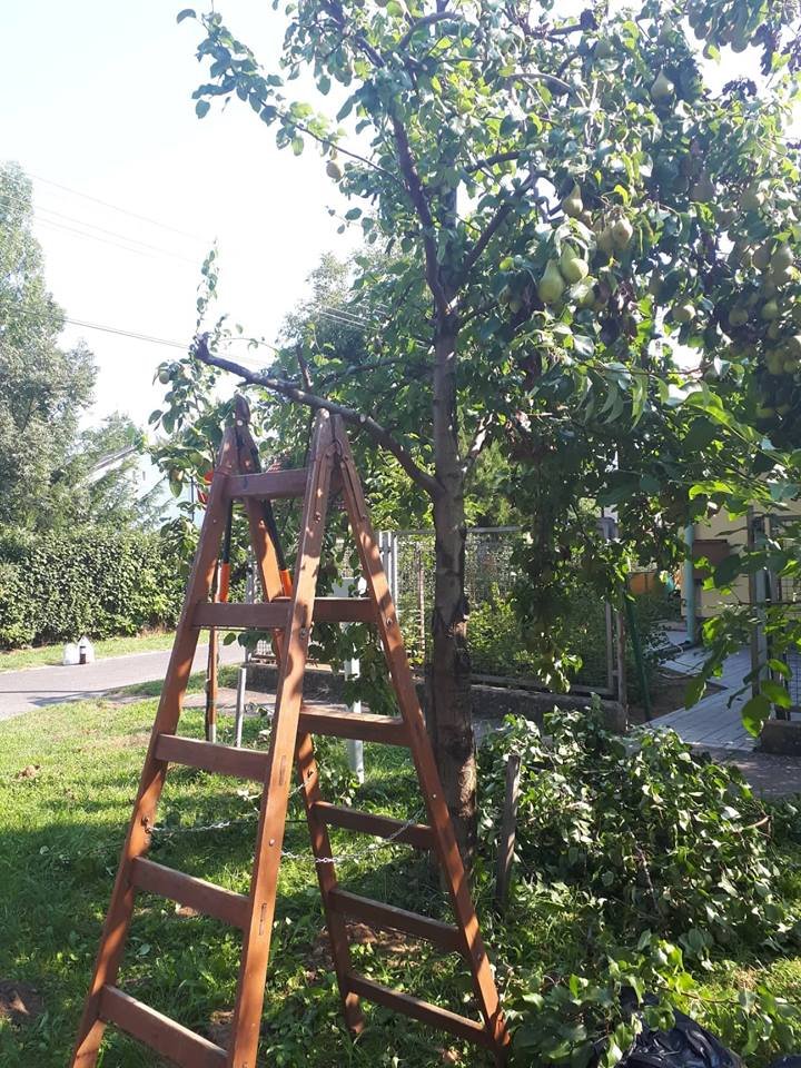 Pista bácsi a szomszéd sarkon ma reggel létrára pattant és nekiesett a kinti vackornak. Ő azért, mert már a vackor tűzelhalásos betegségben van és azért vágta le jócskán az ágakat, mert nem tud magasabbra mászni jócskán túl a 80-on. A körte majd be fog érni bent.