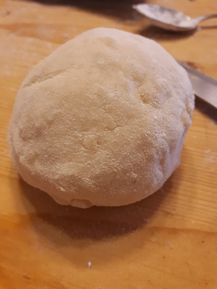 Batyuba fogtam, lisztes kézzel összedolgoztam, gombóccá gömbölyítettem.