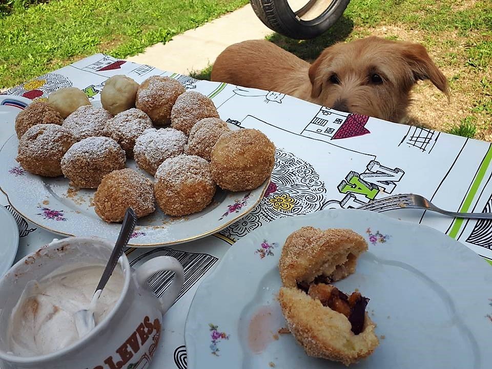 Fahéjas, vaníliás cukros tejföl ment hozzá, ki kért. Szofi kért volna nagyon (picit kapott is..)