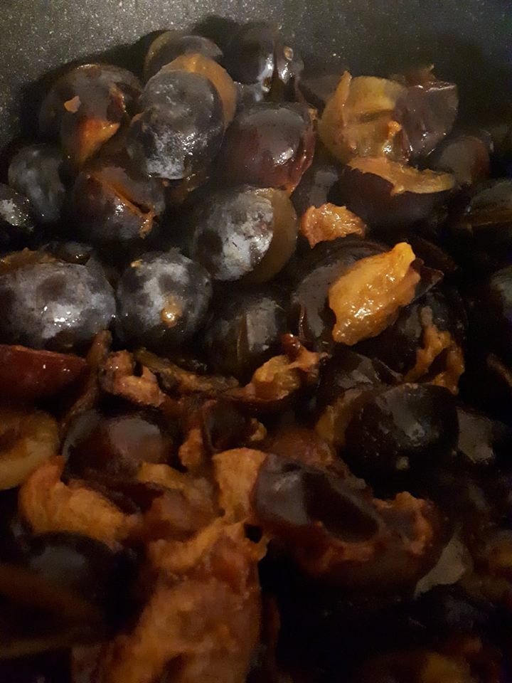 Mivel tudtam, hogy ez egy napi mókám lesz, kivettem pár szemet a kupacból és szilvás gombócot készítettem belőlük addig is, míg a konyhában ácsorgok. A többi szilvát felraktam főni: