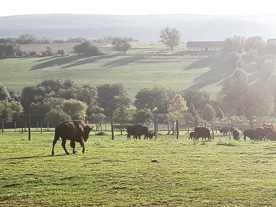 Aztán le kellett zárnom a gázt, kevernem utolsó jókorákat, futottunk Kötcsére a madárlesre. Muszáj volt és fantasztikus. Ültünk egy titkos bunkerben és kémleltük a madarakat, fotóztuk őket (én persze esélytelenül, mindig elrepültek, a telefonom is béna volt hozzá), de a somogyi dombságban is gyönyörködni közben fenomenális volt. Fenyvesi Zoli, aki megmutatta nekünk a szuper dolgokat még egy bölénycsordát is mutatott. Fantasztikus volt a csodaszép somogyi dombságon ez a látvány.