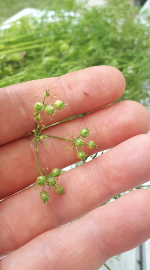 A koriander is felmagzott, kikaptam a töveket, begyűjtöttem a magokat, egy sort másodvetettem, a többit őrzöm, leveleket lecsipegetve szárítva tárolom. Kellett a hely, rengeteg paradicsomot palántáztam idén is, minden felszabadul hely a várakozóké, akik eddig nem fértek be.