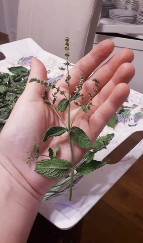 Ha már lemetszettem a menták tetejét, lecsipegettem a leveleket és megy a kamrába a levendula és korienader mellé száradni ő is.
